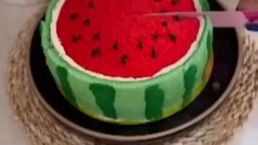 کیک یلدایی به شکل هندوانه: یک دسر جذاب برای شب یلدا