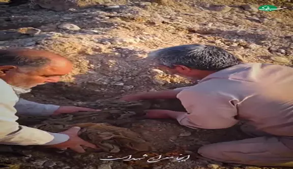 لحظه کشف پیکر مطهر دو شهید دوران دفاع مقدس در منطقه چیلات