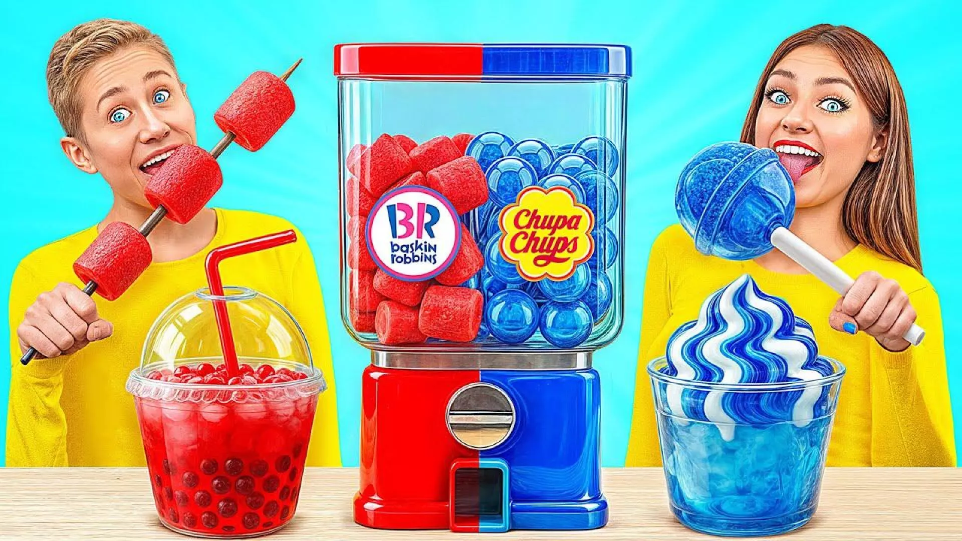 چالشهای جذاب موکبانگ: تجربه طعمهای جدید خوراکی قرمز و آبی