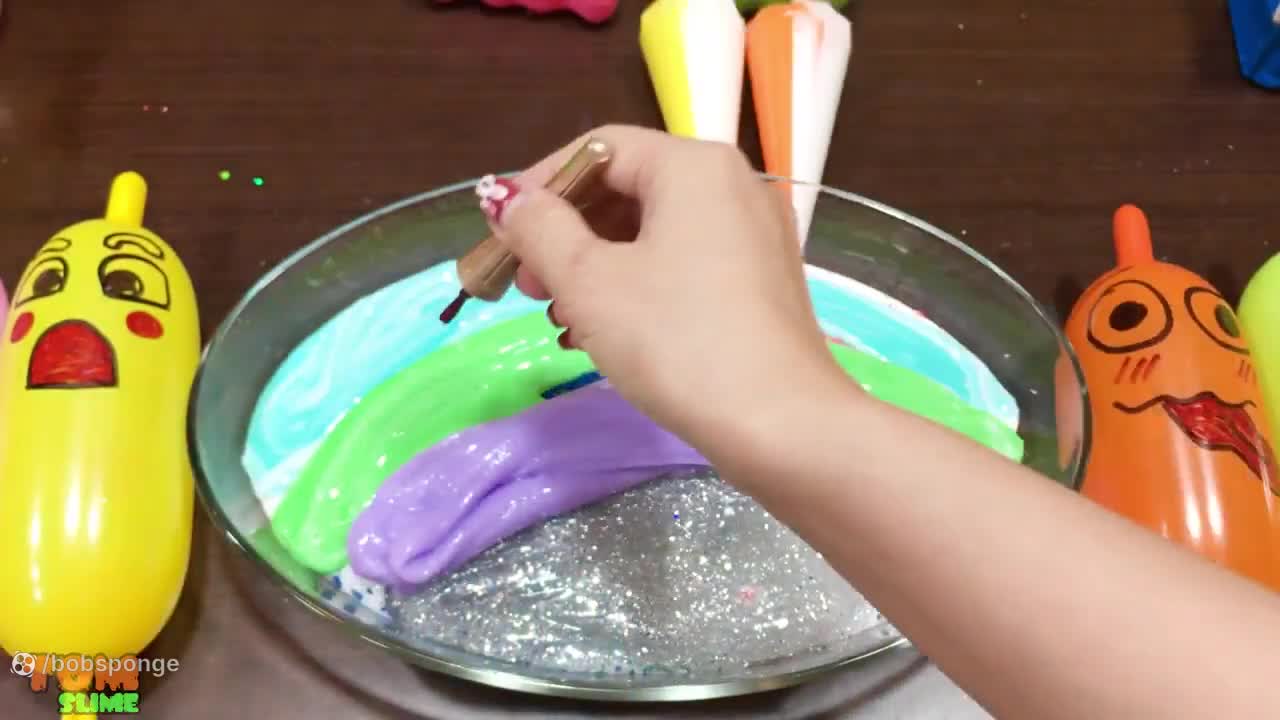 مخلوط کردن اسلایم با بالن های خنده دار در مقابل رنگین کمان _ اسلایم بازی