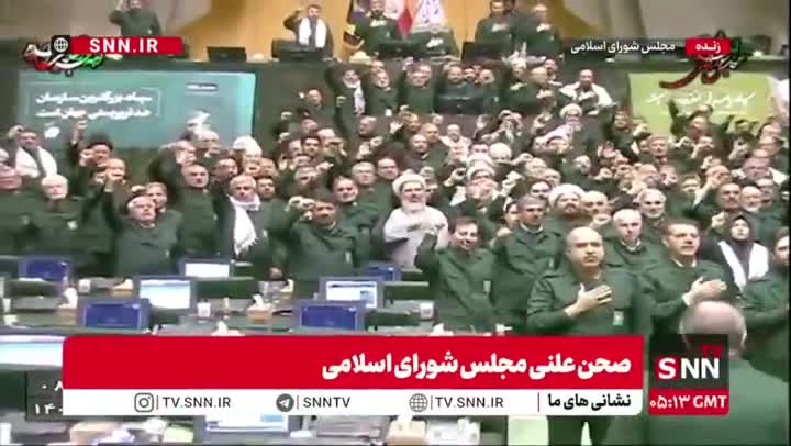 نمایندگان مجلس با لباس سپاه شعار مرگ بر آمریکا و اسرائیل دادند + ویدئو