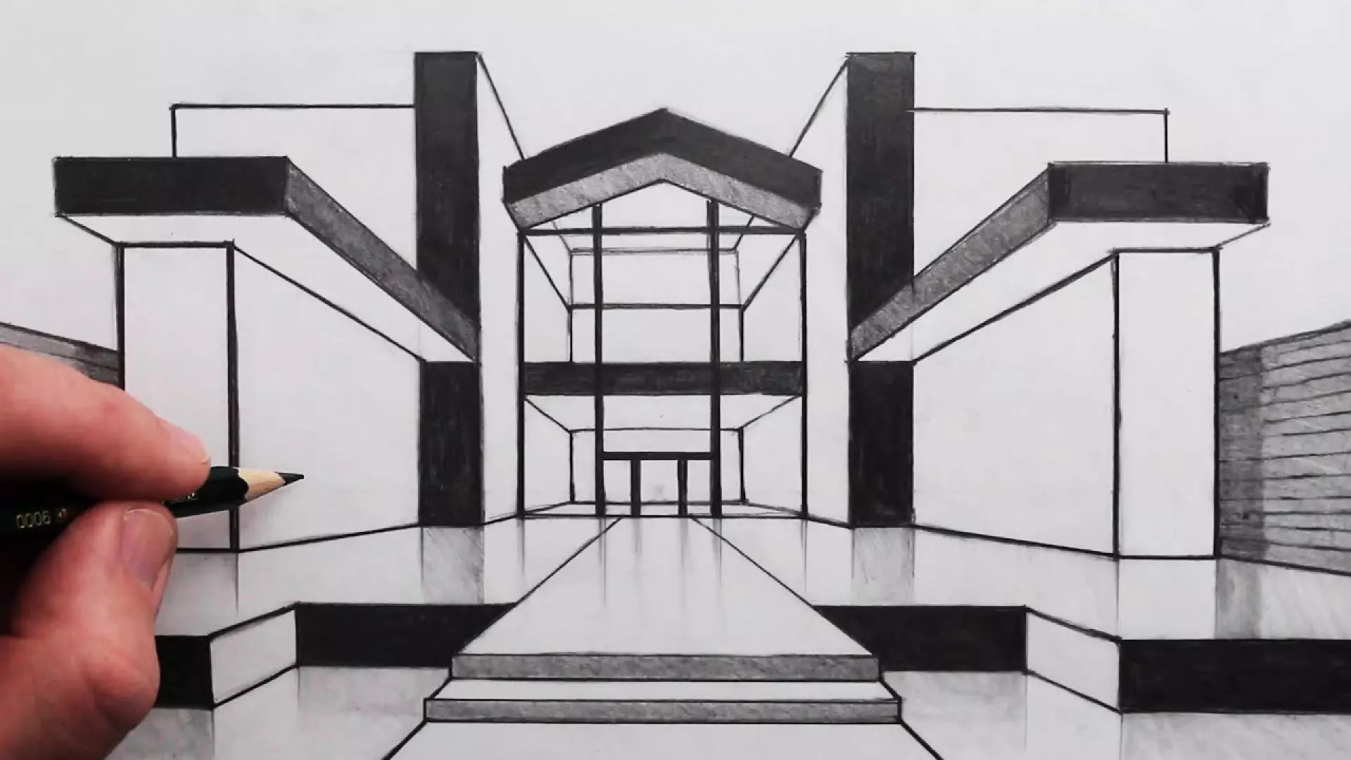 آموزش نقاشی و طراحی | نمای ورودی مدرن خانه | پرسپکتیو یک نقطه ای