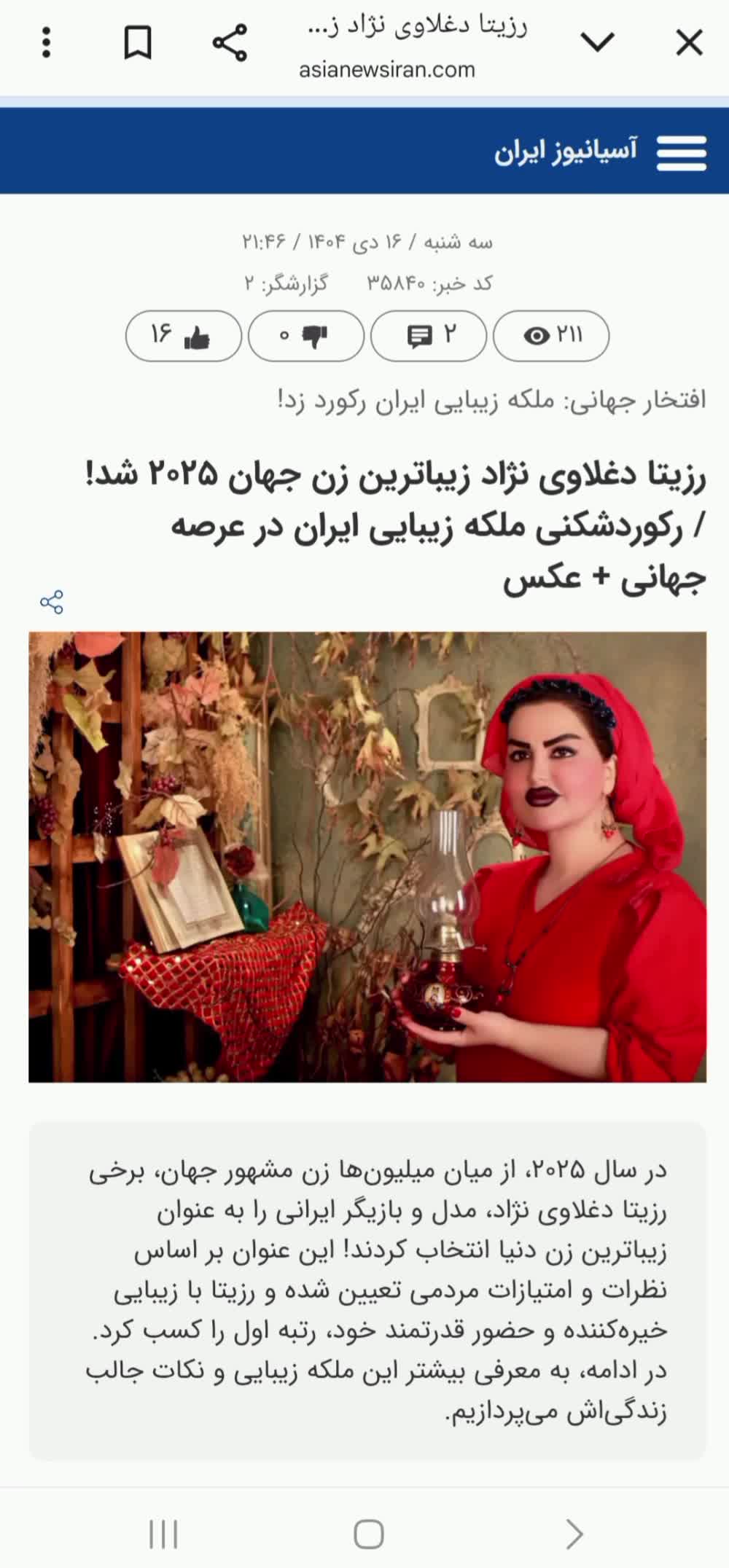 رزیتا دغلاوی نژاد زیباترین زن جهان ۲٠۲۵ شد / رکوردشکنی ملکه زیبایی ایران در عرصه جهانی