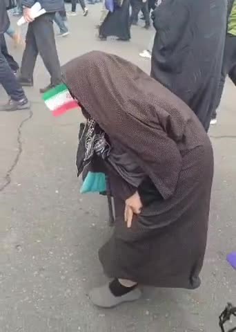 مادر قامت خمیدهای که برای سربلندی ایران اسلامی در راهپیمایی ٢٢ بهمن شرکت کرده است.