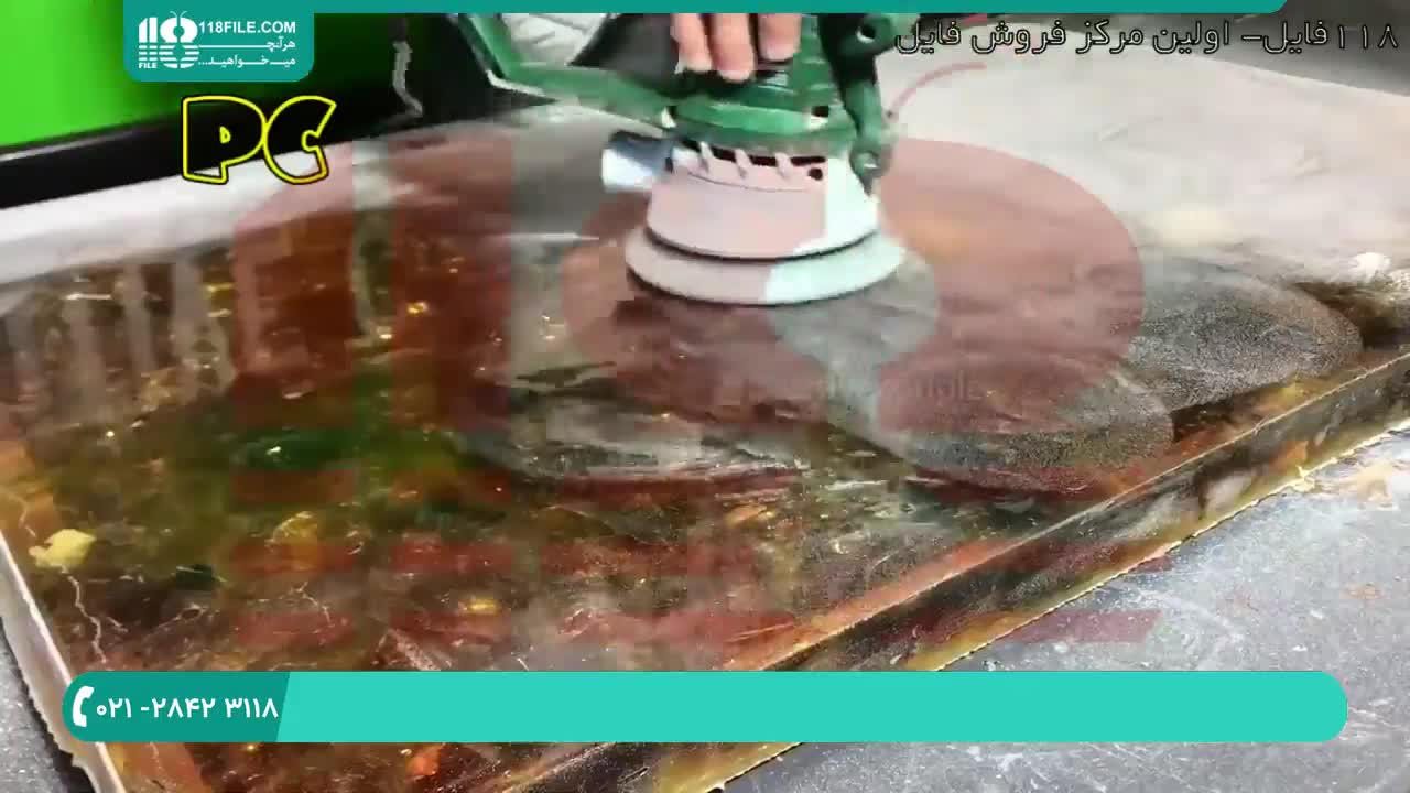 آموزش به کار بردن رزین اپوکسی همراه با سنگ های کریستالی در ساخت میز اداری