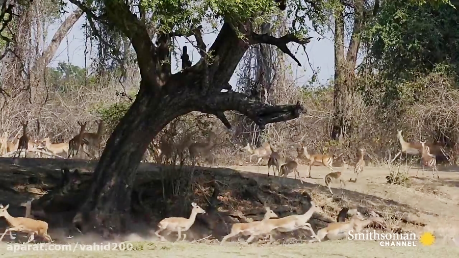 صحنه های زیبایی از شکار پلنگ ماده از بالای درخت