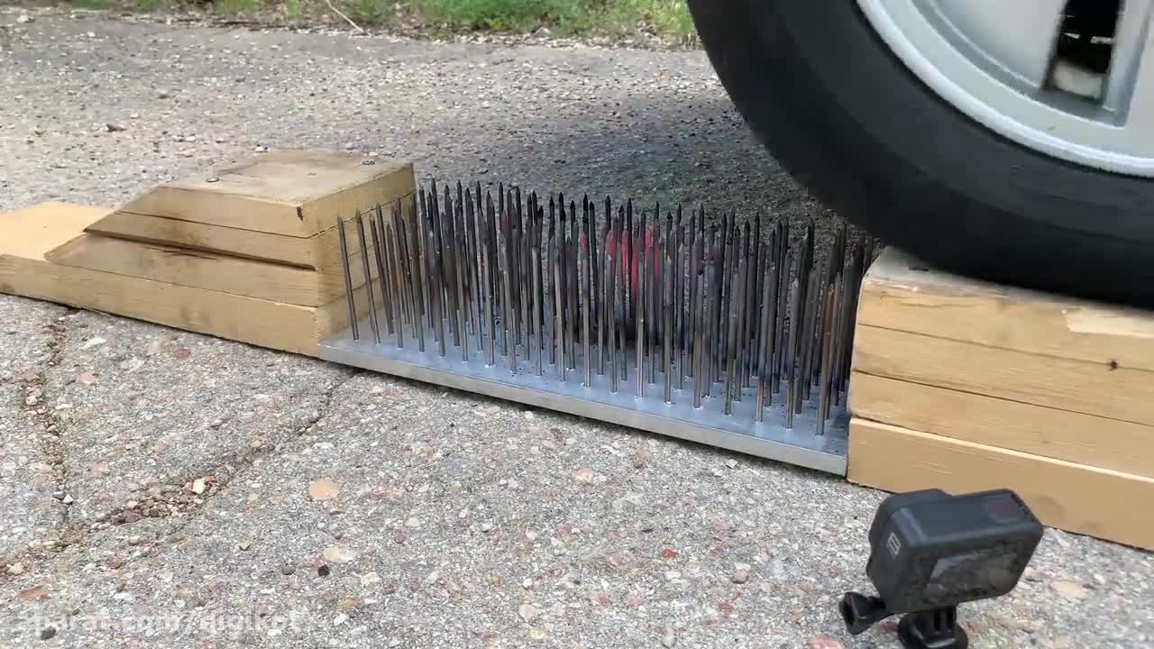 آزمایش های عجیب ؛ عبور خودرو از روی میخ های داغ