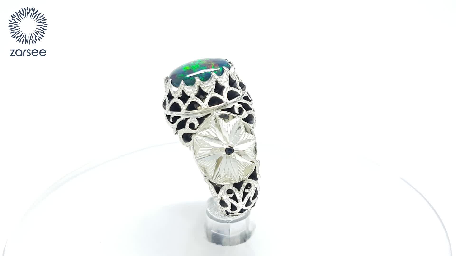 انگشتر اوپال آتشین اتیوپی مردانه دست ساز کد R70