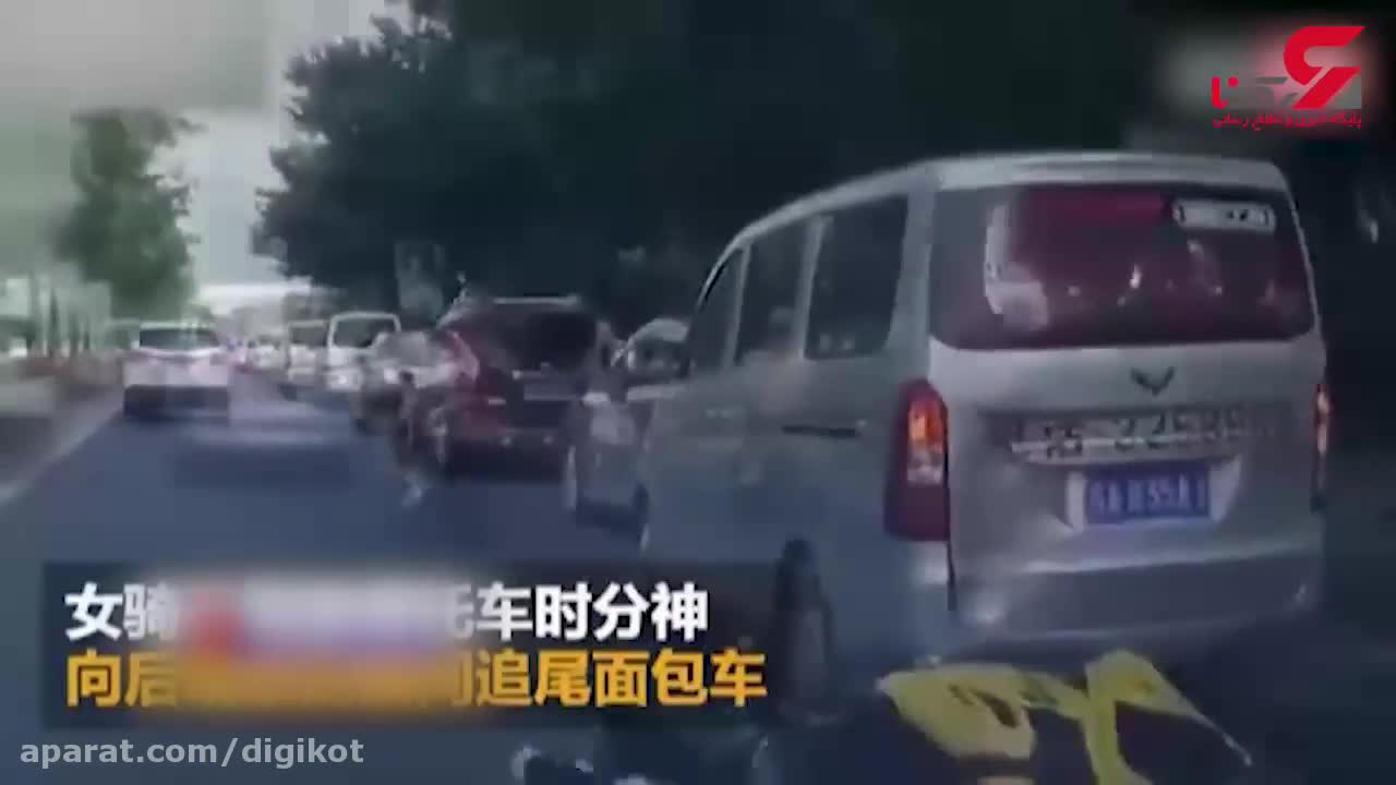 تصادف دختر موتورسوار حواس پرت با خودرو