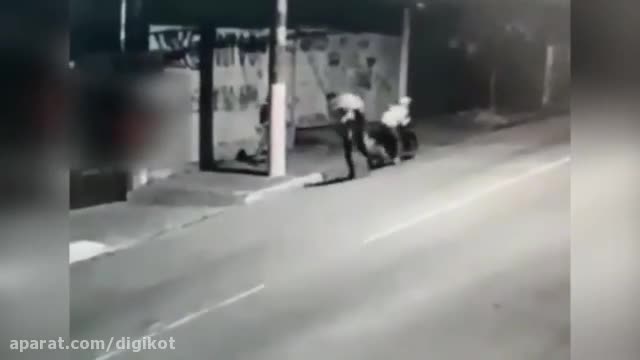 فرار دو سارق موتورسوار از یک زن مسلح تنها در خیابان