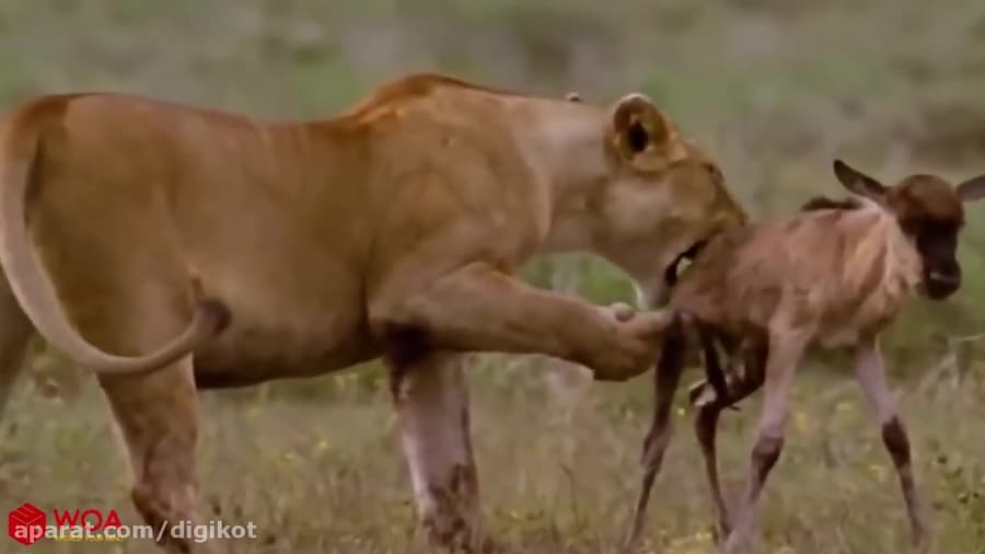 حیات وحش ، حمله شیر به گوزن یالدار تازه به دنیا آمده