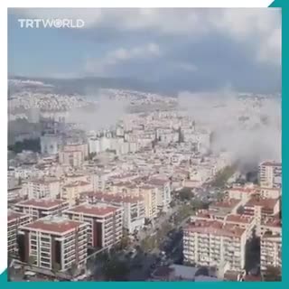 لحظه وقوع زلزله در ازمیر ترکیه و تخریب ساختمانها