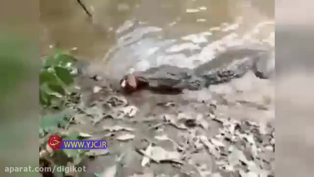 برق گرفتگی تمساح حین شکار مارماهی الکتریکی