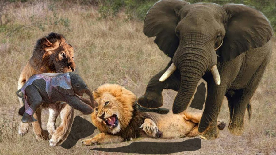 حیات وحش ، حمله شیرها برای شکار ؛ جنگ فیل مادر با گله شیرها