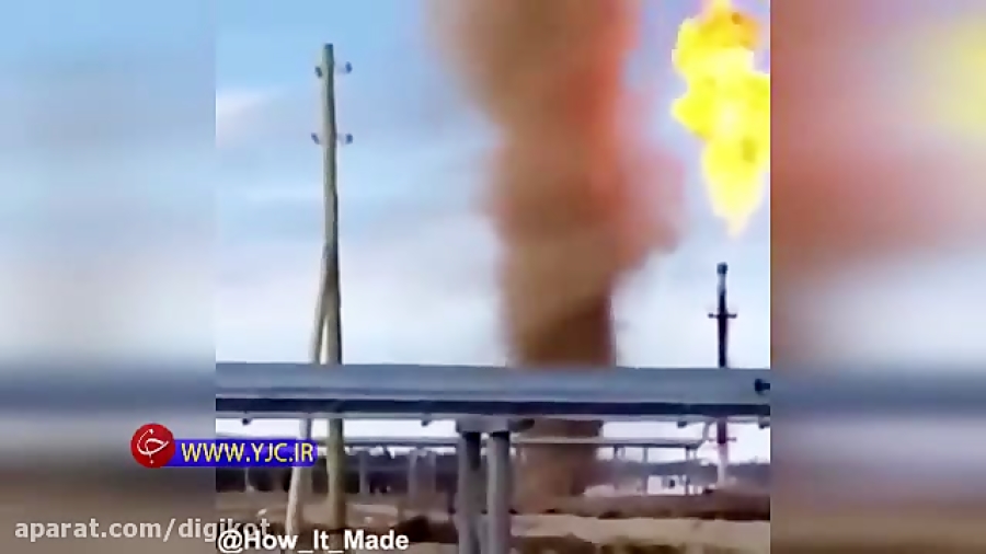 لحظاتی تماشایی از برخورد گردباد با شعله فِلِرهای پالایشگاه