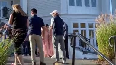 ترامپ در حال عکس گرفتن با یک عروس و ساقدوش هایش