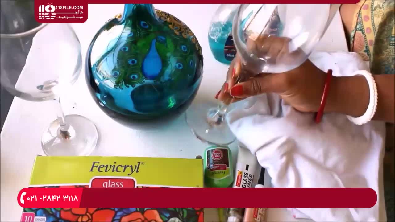 آموزش نقاشی طاووس زیبا بر روی بطری شیشه ای