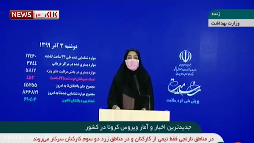 آخرین آمار کرونا ۳ آذر: شناسایی ۱۲۴۶۰ بیمار جدید و فوت ۴۵۳ نفر در ۲۴ ساعت اخیر