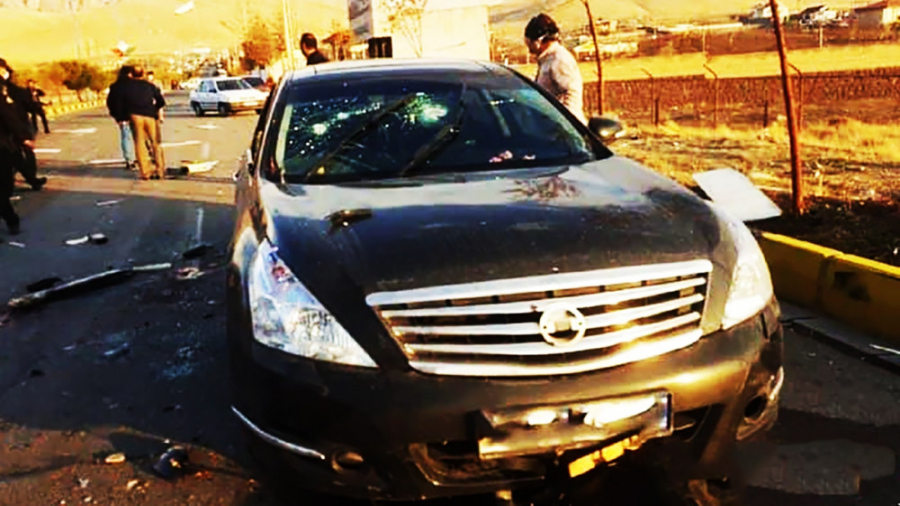 خودروی شهید فخری زاده پس از گلوله باران شدید تروریستها