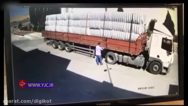 اشتباه مرگبار یک مرد حین باز کردن بار از تریلی