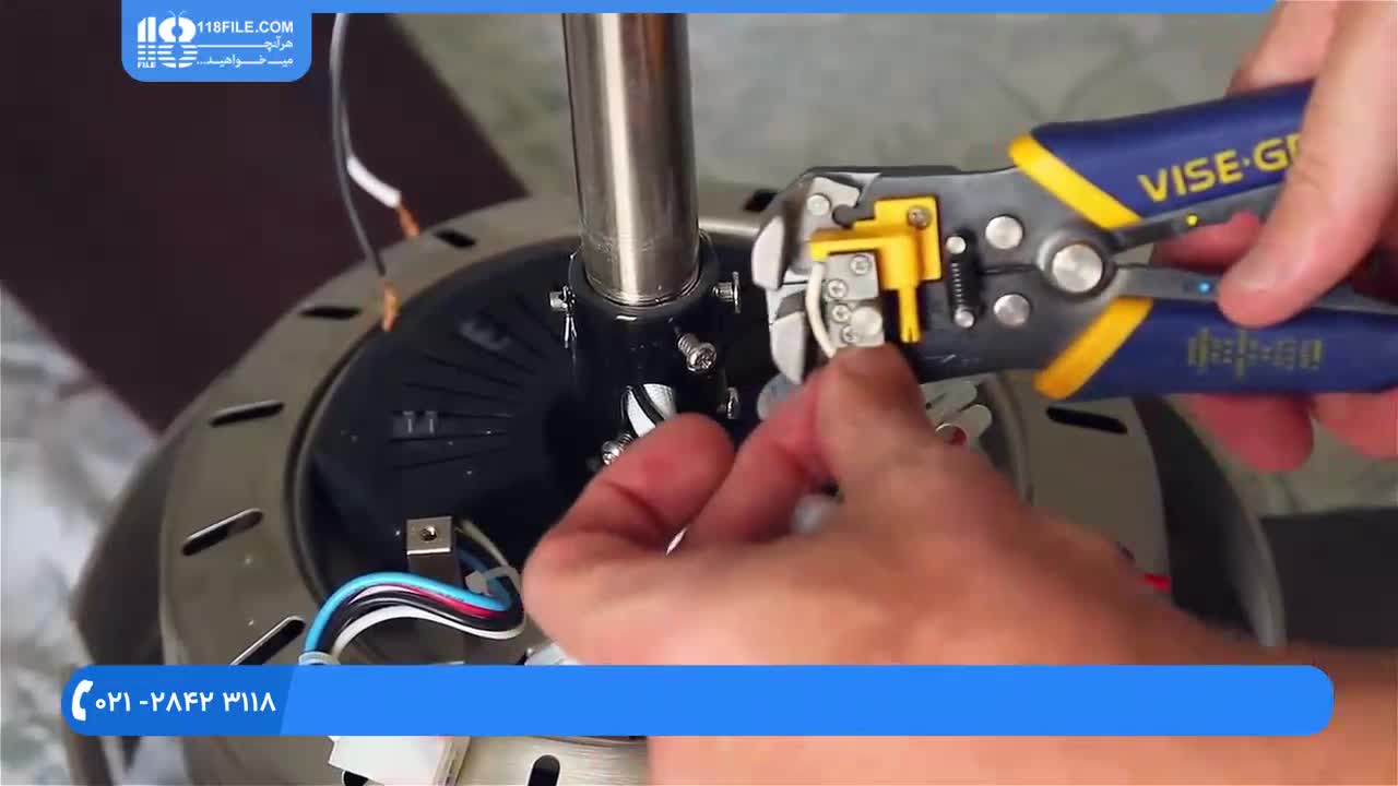 تعمیر پنکه سقفی - تعویض خازن خراب پنکه که باعث آرام چرخیدن پره ها می شود