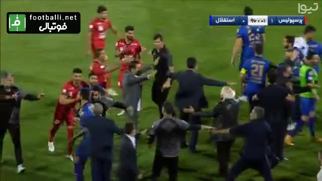 درگیری و زد و خورد بازیکنان در دقایق پایانی دربی ۹۵