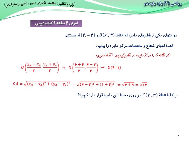 تدریس صفحه 9 کتاب درسی ریاضی 2 (پایه یازدهم) علوم تجربی - هندسه تحلیلی