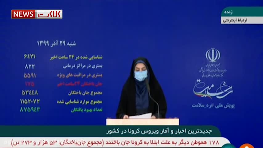 آخرین آمار کرونا ۲۹ آذر: ۶۴۲۱ بیمار جدید و فوت ۱۷۵ نفر در شبانه روز گذشته