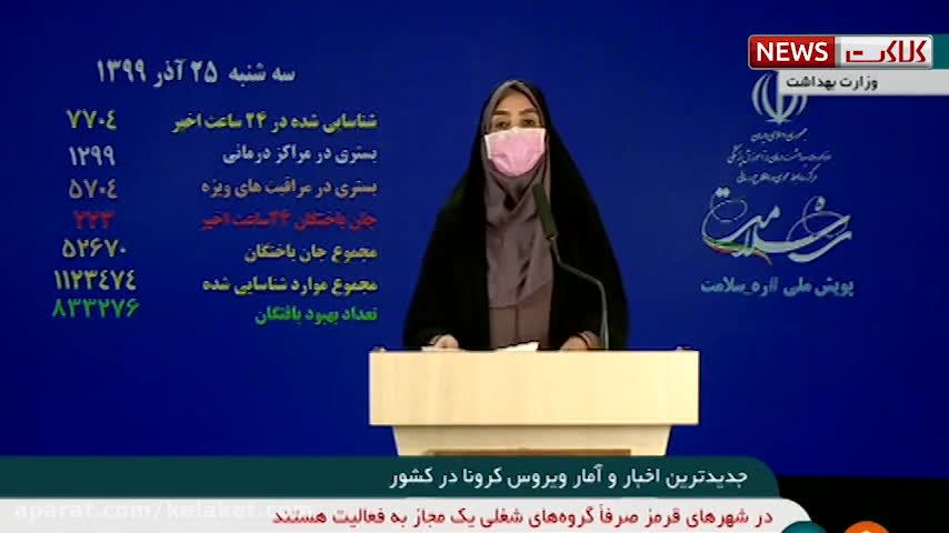 آخرین آمار کرونا ۲۵ آذر: ۷۷۰۴ بیمار جدید و فوت ۲۲۳ نفر در شبانه روز گذشته