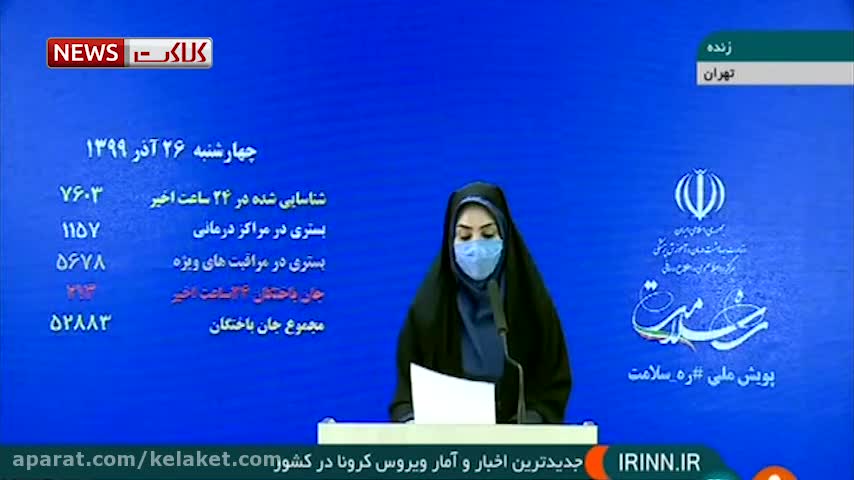آخرین آمار کرونا ۲۶ آذر: ۷۶۰۳ بیمار جدید و فوت ۲۱۳ نفر در شبانه روز گذشته
