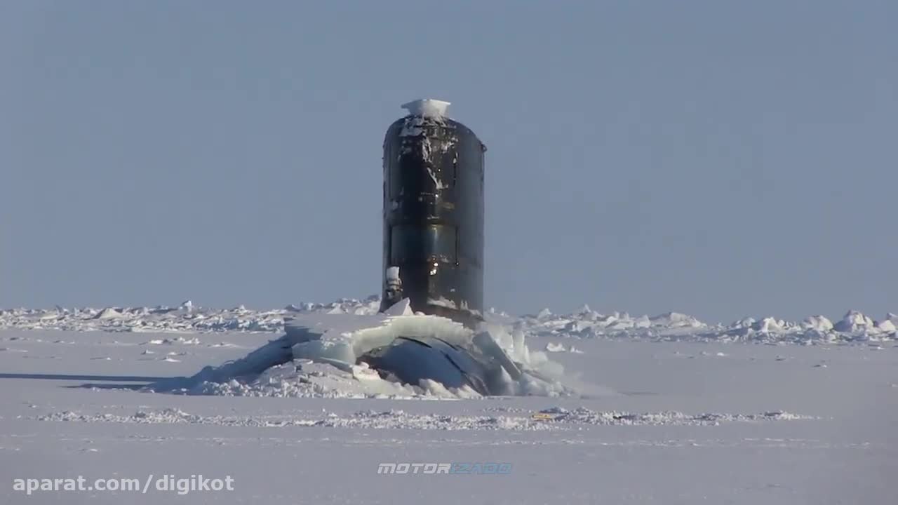 خارج شدن زیردریایی غول پیکر از زیر یخ در اقیانوس منجمد شمالی برای تحقیقات