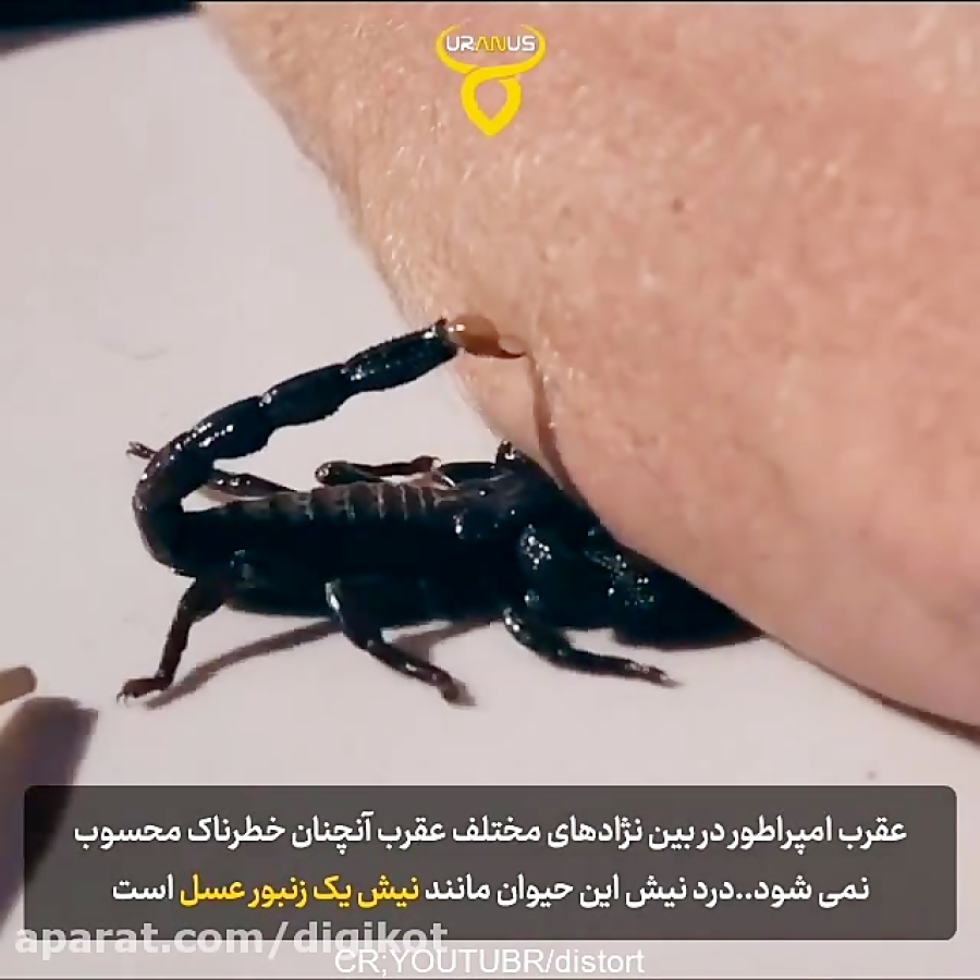 لحظه نیش زدن انسان توسط عقرب امپراطور