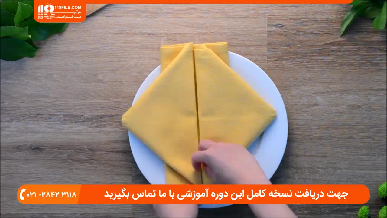 مراحل تا کردن دستمال سفره به شکل لوزی برای میز ناهار