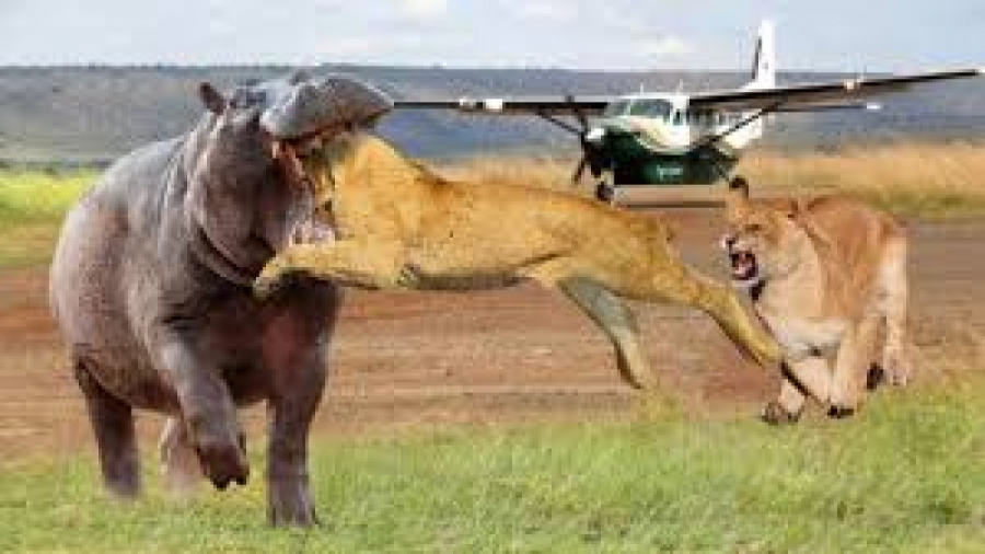 نبرد سنگین شیر و اسب آبی برای بقاء