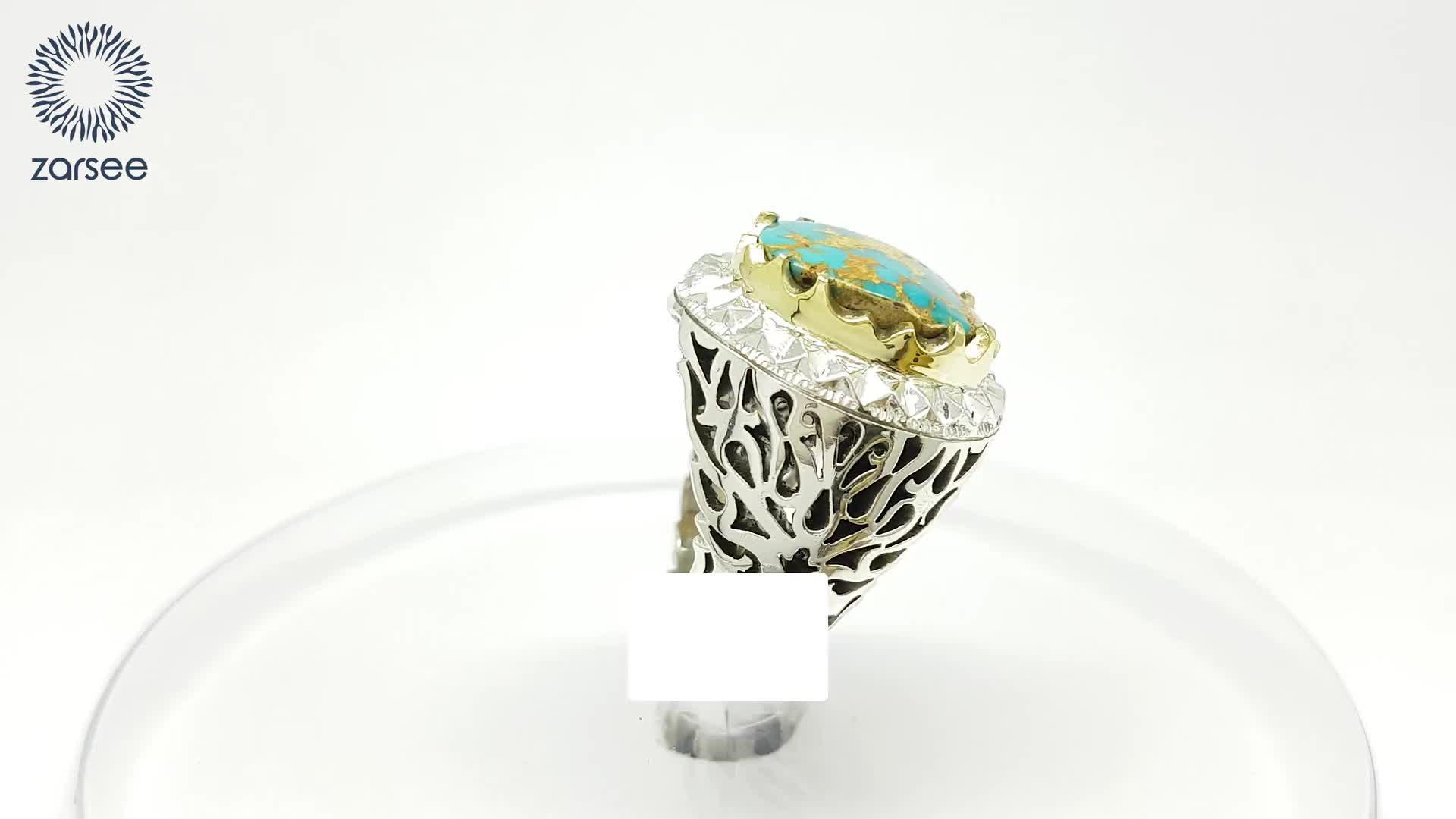 انگشتر فیروزه رگه طلایی نیشابوری مردانه دست ساز کد R74