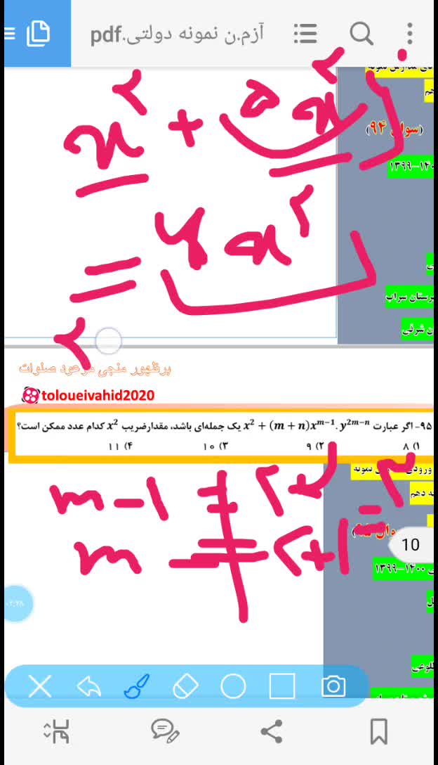 حل سوال ۹۵و۹۶ریاضی آزمون ورودی مدارس نمونه دولتی آذربایجان شرقی اردبیل ۱۳۹۹۱۴۰۰
