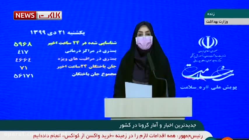 آخرین آمار کرونا ۲۱ دی: ۵۹۶۸ بیمار جدید و فوت ۷۱ نفر در شبانه روز گذشته