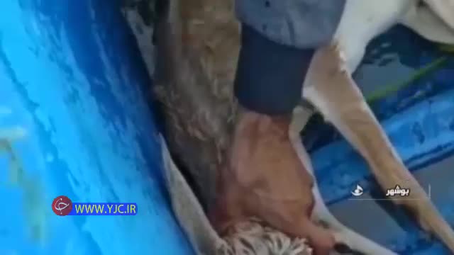 بیرون کشیدن بچه آهو از دریا توسط یک ماهی گیر