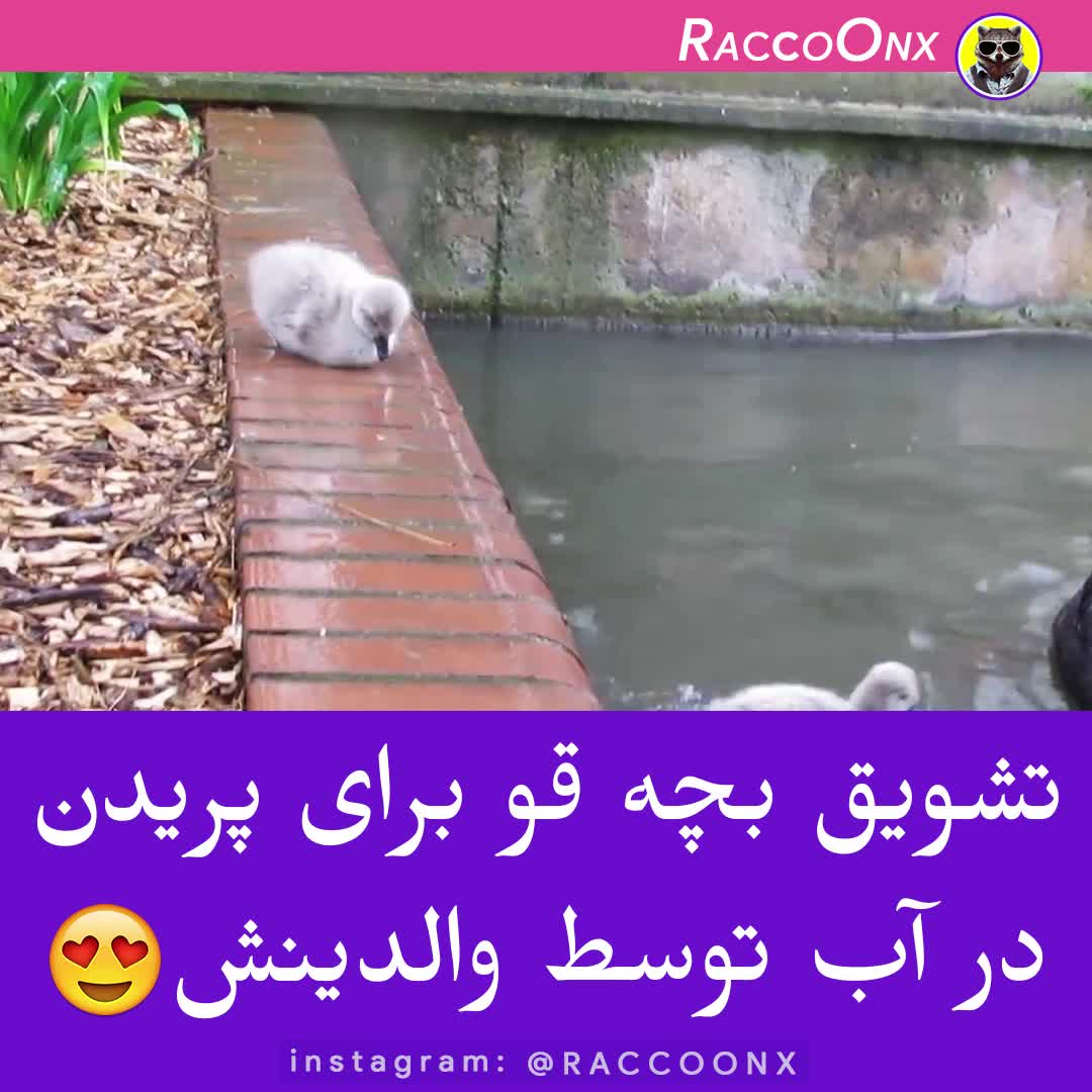 بچه قو به آب پرید