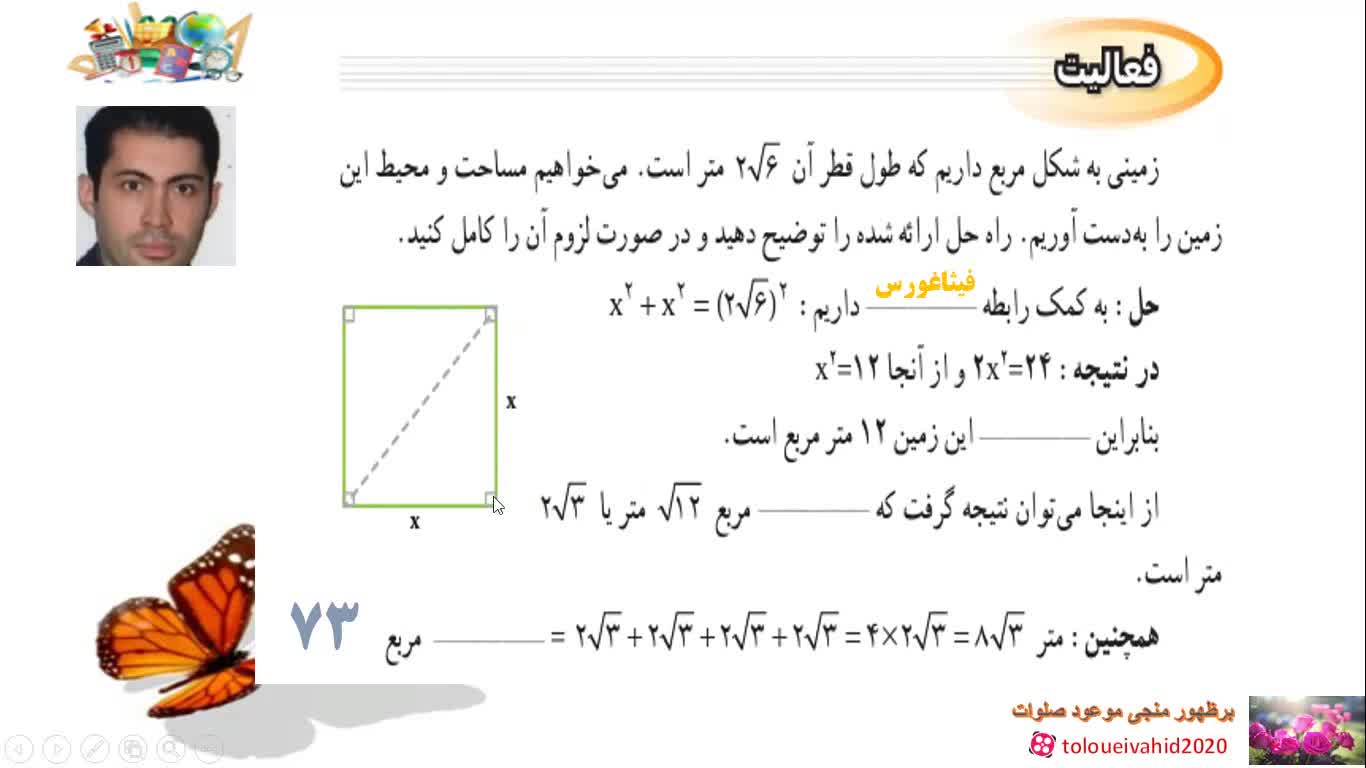 تدریس درس چهار از فصل چهار ریاضی نهم :جمع و تفریق رادیکال ها(ساده کردن رادیکال ها و گویا کردن مخرج کسر ها)