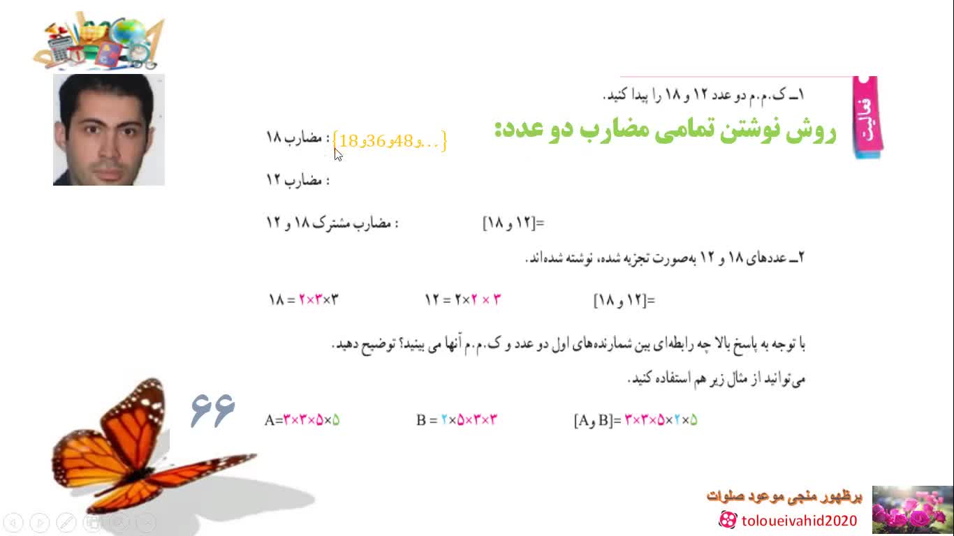 تدریس درس چهار از فصل پنج ریاضی هفتم (کوچکترین مضرب مشتر دو عدد یا ک.م.م دو عدد)