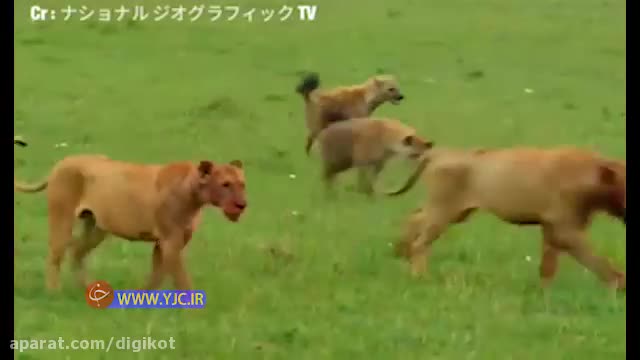 جنگ سخت شیر و کفتار برای تصاحب شکار