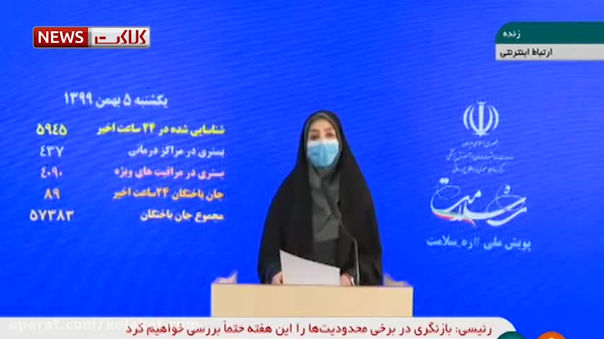 آخرین آمار کرونا در ایران، ۵ بهمن ۹۹: فوت ۸۹ نفر در شبانه روز گذشته