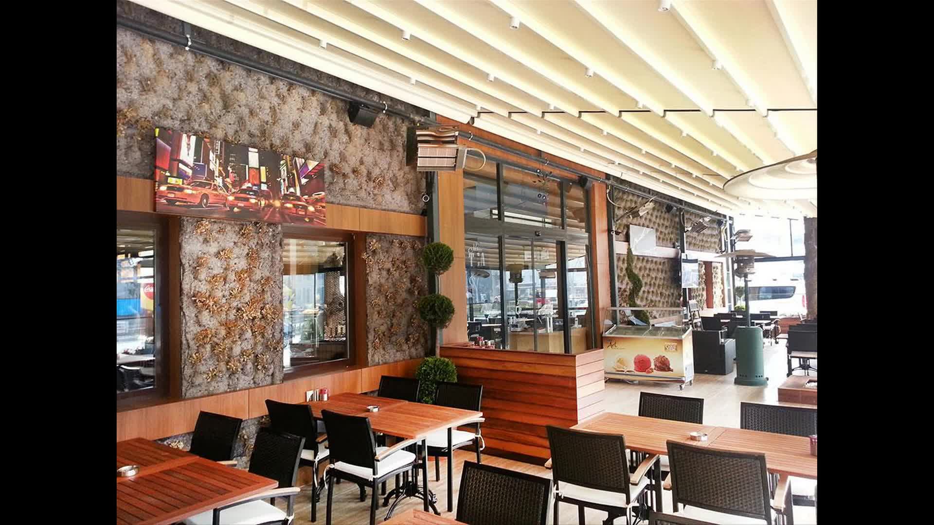 حقانی09380039391-زیباترین سایبان برقی رستوران-سقف جمع شونده تالار-فروش سقف برقی رستوران بام