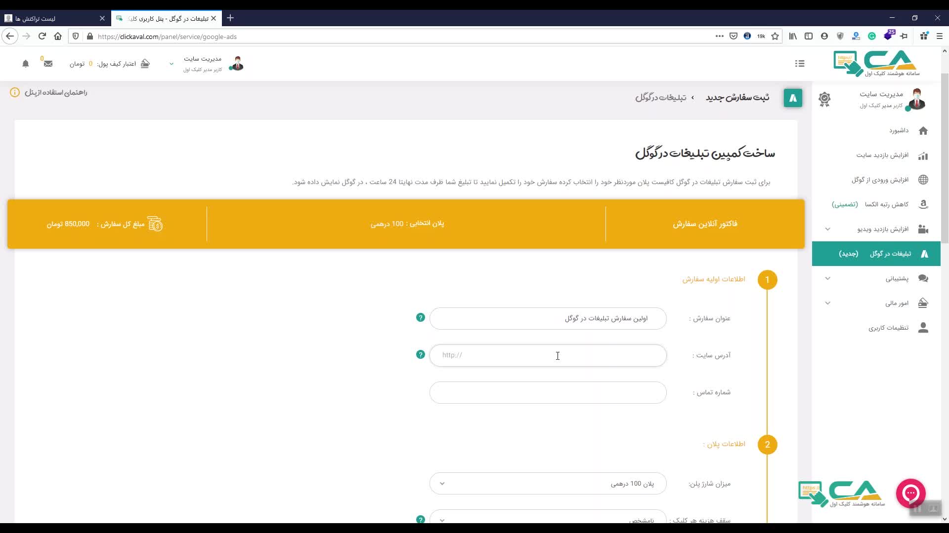 آموزش نحوه ثبت تبلغ گوگل ادز (Google Ads) در پنل کاربری سایت کلیک اول