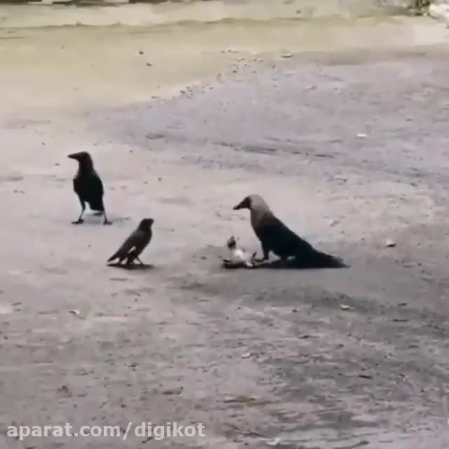 از خود گذشتگی پرنده مادر برای نجات جوجه از دست کلاغ ها
