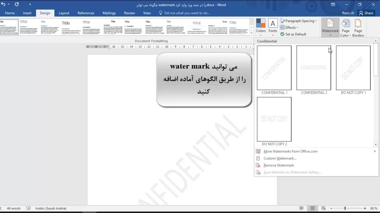 چگونه می توان watermark را در سند ورد وارد کرد؟