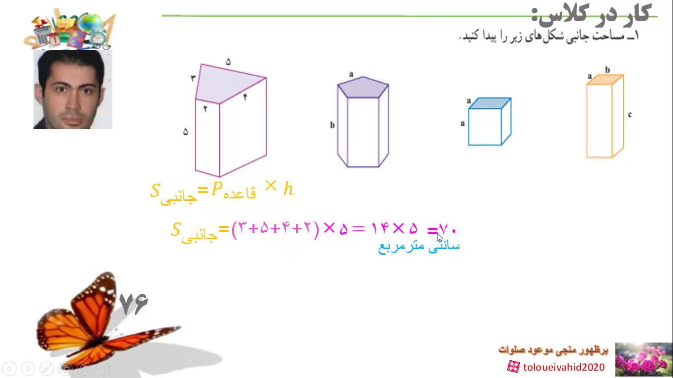 تدریس درس دو از فصل شش ریاضی هفتم مساحت جانبی وکل