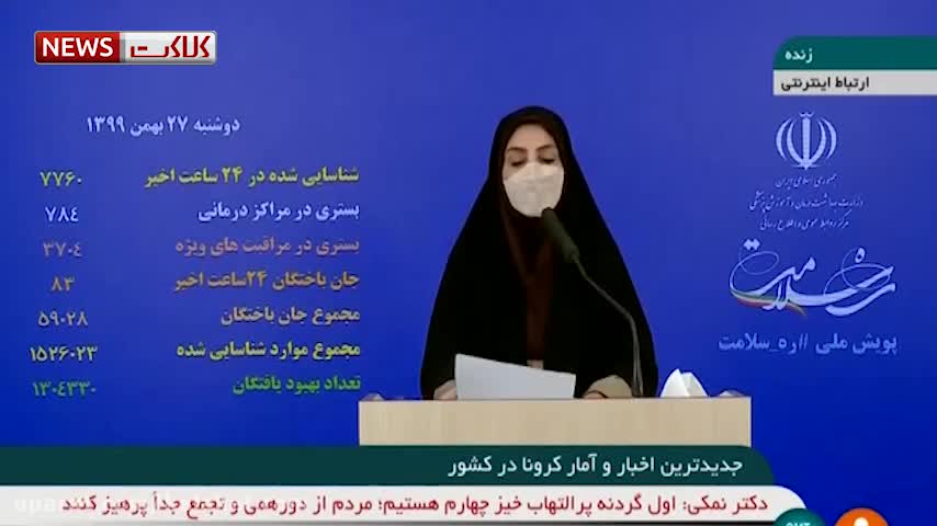 آخرین آمار کرونا در ایران، ۲۷ بهمن ۹۹: فوت ۸۳ نفر در شبانه روز گذشته