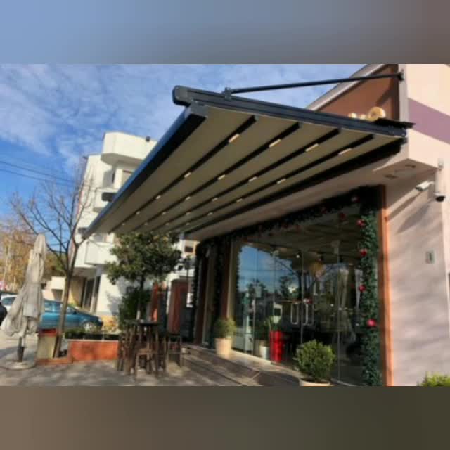 سقف سایبان برقی برزنتی کافی شاپ روکش PVC شرکت مهلر
